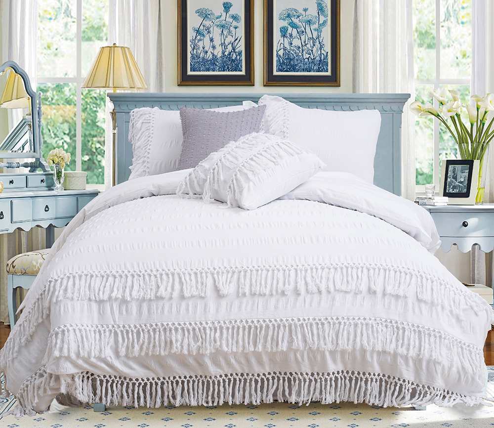 · What You Can Get: 3pcs queen size 100% cotton tufted duvet cover set( 1 duvet cover 90" x 90", 2 pillow shams 20" x 26")